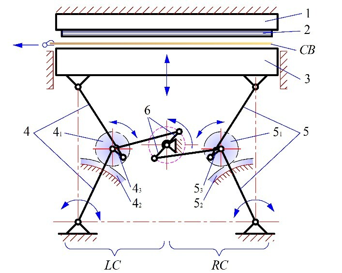 В. В.: Класичні розклинювальні механізми мають технічну ваду – плита рухається з певними коливаннями і працює асиметрично. Це знижує експлуатаційні характеристики преса. Для усунення проблеми ми запропонували двоповзунний розклинювальний механізм: він забезпечує рівномірний рух плити, зменшує пікові прискорення та конструктивно простіший. Також ми розробили механізм, у якому застосовуються два подвійні розклинювальні контури, що працюють синхронно, та розклинювальний механізм з додатковим веденим кривошипом і зубчастою передачею. За рахунок цієї модернізації вдається суттєво зменшити інерційні навантаження, подовжити контакт інструментів із картоном і знизити пікові навантаження на привод. Такі комбіновані рішення не лише покращують технологічний процес (особливо холодне тиснення), але й знижують витрати енергії та підвищують ресурс пресів.