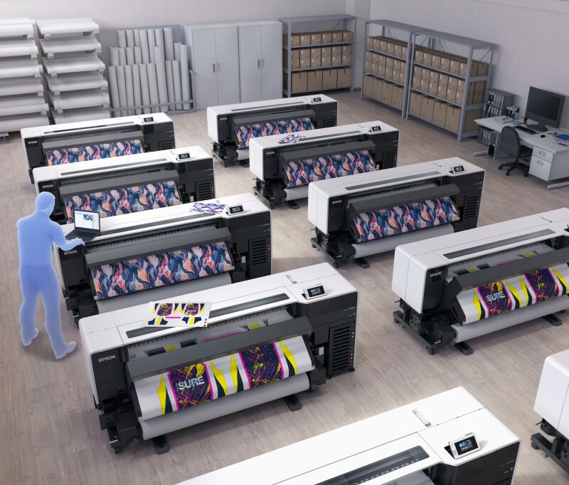 Лінійка DTG (Direct-to-Garment) та DTF (Direct-to-Film) для текстильної індустрії: Персоналізація на новому рівні. Epson є провідним гравцем у сегменті прямого друку на текстилі (DTG) та прямого друку на плівку (DTF). Принтери Epson SureColor F-серії, зокрема SC-F2100/F2200/F3000 (DTG) для прямого друку на готових виробах, та сублімаційні принтери SC-F500/F6400/F9500, змінили правила гри в індустрії декорування одягу та виробництва текстильної продукції.