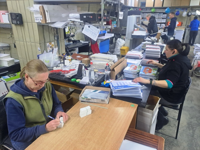 Серед переваг друкарні «Планета» Анна називає потужну команду постпресу: багато жінок опанували роботу на спеціалізованому обладнанні, а частину молодих співробітників навчили працювати на виробництві з нуля. Більшість операторів володіють кількома машинами та можуть підміняти одне одного. Сезонна зайнятість також виручає — у пікові місяці залучають потрібних фахівців, наприклад друкаря на офсетну машину.