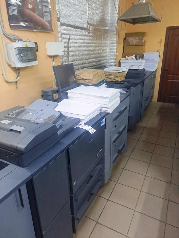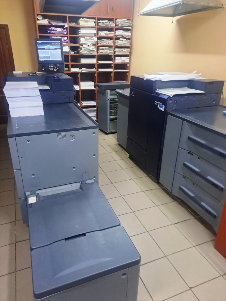 Окрім кольорових систем, друкарня має у своєму парку дві монохромні машини Konica Minolta bizhub PRO 1050 — продуктивні, витривалі, із запасом міцності, що дозволяє виготовляти великі чорно-білі наклади без ризику простоїв.