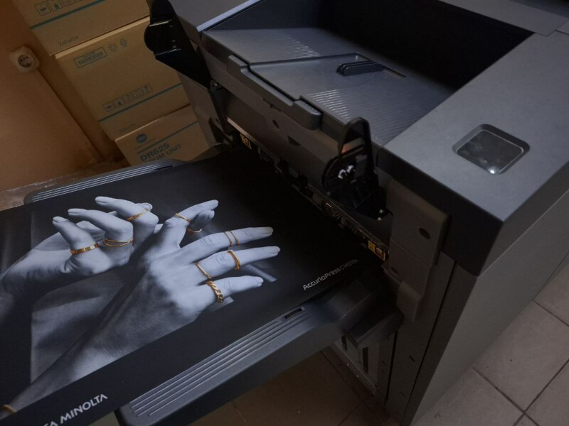 Першою цифровою друкарською машиною компанії стала Konica Minolta bizhub PRESS C6000. Анна й досі вважає її однією з найвдаліших моделей у лінійці виробника: стабільна, передбачувана, з дуже контрольованою якістю кольору. Вона заклала основу для роботи з агенціями та клієнтами, яким потрібні оперативність і повторюваність.