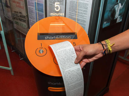 В торгово-развлекательных комплексах в Гренобле, Франция, рождается «книжная» индустрия в стиле фаст-фуд: вендинговые автоматы издательства Short Edition печатают короткие рассказы на 1, 3 и 5 минут. Доступ ко всем 600 рассказам абсолютно бесплатен.