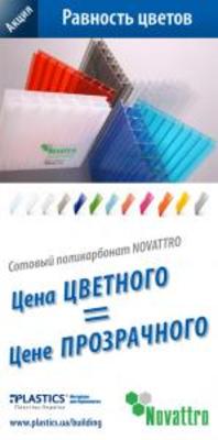 С 1 августа листы сотового поликарбоната Novattro различных цветов можно приобрести по цене прозрачного.