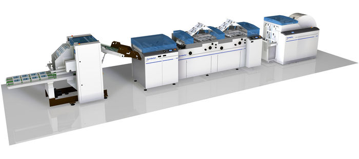 Эта очень гибкая производственная линия подходит для обработки бумажных полотен шириной до 30'' при рабочей скорости до 200 м / мин. Она включает устройство поперечного и продольного реза в модуле Hunkeler CS6-I, устройство фиксации тетрадок в книжном блоке за счет нанесения клея в новом Non-Stop выкладе SD7. Бумажные полотна шириной до 760 мм можно обрабатывать в сигнатуры с четырьмя, шестью или восемью страницами. Возможны различные виды фальца.