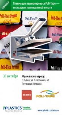 Компания «Пластикс-Украина» рада пригласить Вас во Львов 31 октября принять участие в семинаре: «Пленки для термопереноса – технологии полноцветной печати. Пресса Adkins».