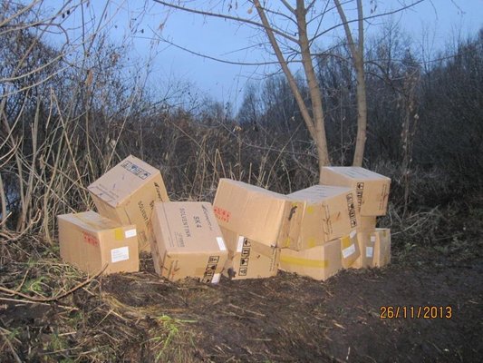 Пятнадцать картонных ящиков находились на берегу пограничной реки Клевень неподалеку от села Сопыч Глуховского района.
