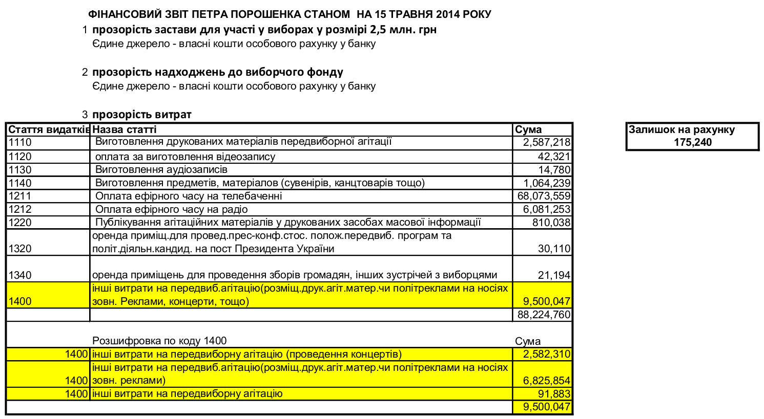 Рисунок 1. Расходы Петра Порошенко на избирательную компанию (источник — http://chesno.org/media/uploads/poroshenko_fin_report.jpg)