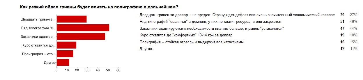 Уважаемые коллеги! Пожалуй наиболее злободневная тема для нас с Вами сегодня — это резкий обвал национальной валюты. Нас как редакцию профильного издания очень интересуют действия полиграфистов в сложившейся ситуации. И, соответственно, будущее отрасли. Примите пожалуйста участие в опросе, заполнив соответствующую анкету по ссылке: https://docs.google.com/forms/d/10ZMi26p1eeI6tbgx-t8k8tUCemZOi-ah19dds0z6IYQ/edit# либо формочку после статьи (такая возможность недавно добавлена на нашем сайте)
