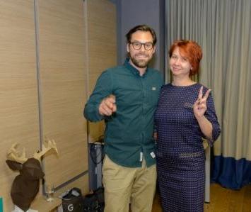 Ян Ричнер в паре с Ларисой Писаренко выступили с презентацией «Colorplan: теория и история цвета, разработка цветовых карт как эффективного инструмента формирования среды бренда».