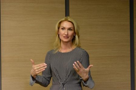 Анжелика Гнатенко представила публике гостей: менеджера компании GF Smith по продажам в странах Европы Яна Ричнера; бренд-менеджера по направлению дизайнерских бумаг ГК «Дубль В» Ларису Писаренко; представителя компании GF Smith Бена Уоткинсона.