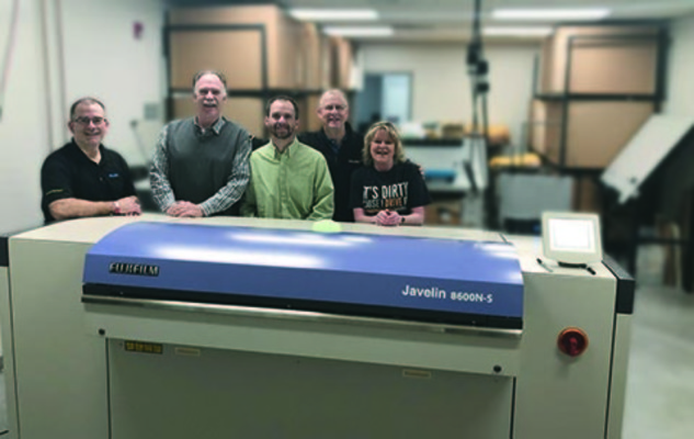 На снимке: рядом с плейтсеттером Fujifilm Javelin 8600N-S, слева направо, Терри Суэйд, менеджер по корпоративным операциям Salem One; Грейди Дикерсон, менеджер по продажам Fujifilm; Эрик Зауэр, руководитель пресс-службы Salem One; Фил Келли младший, президент Salem One; Энн Вагнер, оператор CtP Salem One.