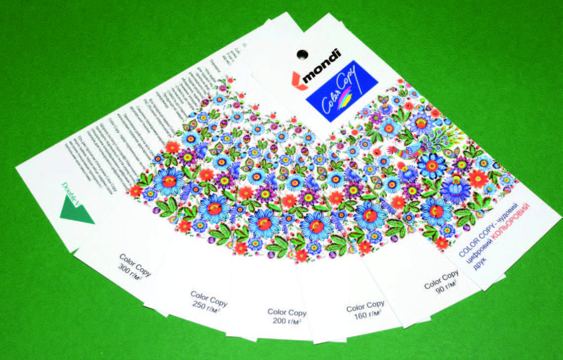 Чимало клієнтів, які звертаються до відділу роздрібних продажів компанії «Дубль В Україна», займаються цифровим друком. Тому в минулому році «Дубль В Україна» переважно через роздрібні відділи в Києві та Дніпрі почала продавати папір преміум-класу Color Copy австрійського концерну Mondy (Австрія). «Дубль В Україна» представляє Color Copy в форматі SRA3 (450х320 мм) у семи різних щільностях (90, 120, 160, 200, 250, 300, 350 г/м2), але плануються поставки і в форматі А4, оскільки папір в такому форматі неодмінно користуватиметься попитом. Папір Color Copy сертифікований FSC (Лісовою опікунською радою) та провідними виробниками друкарської техніки для роботи на їхньому електрографічному обладнанні. Щороку інститут поліграфії Німеччини FOGRA проводить порівняльні тести основних спеціальних паперів для кольорового електрографічного друку. Впродовж п’яти останніх років Color Copy бере першість завдяки високим показникам прохідності й чудовим тактильним властивостям.