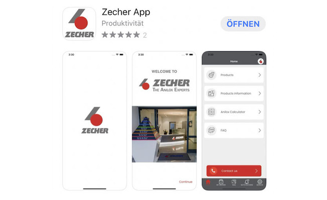 Німецька компанія Zecher, що випускає анілоксові вали та друкарські циліндри, розробила мобільний додаток Zecher App, вже доступний для завантаження в Google Play Market та Apple App Store. Без реєстрації користувачі програми можуть отримати доступ до інформації про виробника та його продукти, відповіді на найчастіші запитання клієнтів, а також калькулятор, що дає змогу розрахувати вартість анілоксів.