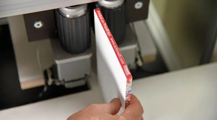 Також у машині є вбудована пневмосистема, яка готує обріз до друку, видаляючи з нього пил.