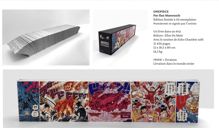 "ONEPIECE – це нечитабельна скульптура, що має подобу книги, яка матеріалізує екосистему онлайн-поширення коміксів", – коментує мистецький витвір Мануаша представник видавця книги JBE.