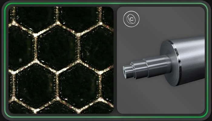 - підвищена щільність на друкарській поверхні та чіткість точок приблизно на 15% вища, ніж у керамічних анілоксів;