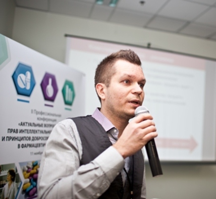 На конференции обсуждались следующие темы: патентная защита в фармацевтике, торговые названия лекарственных средств и защита от недобросовестной конкуренции, а также, в рамках круглого стола, проблема контрафактных лекарственных средств (мировая практика противодействия). Денис Левин представил присутствующим компанию AGFA и рассказал о практических подходах к безопасности бренда. По его словам, для осложнения работы производителей контрафакта достаточно добавить в дизайн упаковки (возможно, даже без модификации дизайна) фармацевтических препаратов специальные графические элементы.
