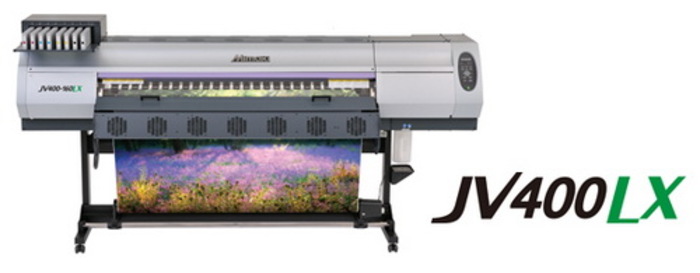 Четырехкрасочная модель JV400-130/160SUV печатает со скоростью до 18 м2/ч. Уникальность принтера — в комбинировании гибкости сольвентных чернил и стойкости УФ-отверждаемых благодаря оригинальному составу от Mimaki. В процессе печати сольвентный компонент чернил полностью поглощается верхним слоем запечатываемого материала с закреплением в нем пигмента. После этого чернила проходят УФ-отверждение, обеспечивающее ровную, глянцевую поверхность с эффектом лакирования и яркостью цветов сольвентного принтера. Кроме того, УФ-отверждение повышает стойкость отпечатка к царапинам и воздействию окружающей среды. Отпечатки выходят из принтера полностью сухими, готовыми к дальнейшей обработке.