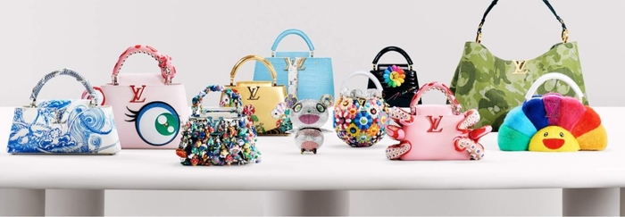 Приміром, модель Capucines BB Golden Garden частково прикрашена золотою фольгою, на моделі зі шкіри «під крокодила» надрукований автограф художника, а з однією з сумок у рожевому кольорі кавово дивиться око Містера Доба, переосмисленого японцем американського Міккі Мауса, що спочатку зображувався з оскалом.