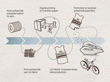 З нагоди чемпіонату світу з велоспорту UCI 2023 р., який пройде з 3 по 13 серпня Шотландії, Міжнародна спілка велосипедистів обрала компанію Santini для виготовлення нагрудників із матеріалів, придатних для вторинної переробки. Судді, волонтери, комісари та інший персонал та акредитовані фотографи носитимуть їх упродовж усього заходу.