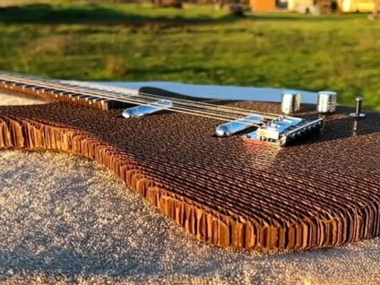 Конструктор-дизайнер, відомий у всесвітній мережі під псевдонімом Burls Art, виготовив електрогітару з гофрокартону, яка, за його словами, повністю відповідає професійним вимогам. Ідею він запозичив із досвіду компаній Fender і Signal, які раніше створювали подібні інструменти з щільного картону.