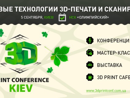 5 сентября 2014 в Киеве пройдет первая выставка-конференция передовых технологий 3D-печати и сканирования 3D Print Conference. В НСК «Олимпийский» эксперты отрасли из разных городов Украины и зарубежья представят новейшее оборудование и различные предметы, созданные с помощью трехмерной печати.