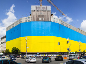 В мае фасад ЦУМа в Киеве украсил самый большой флаг Украины, изготовленный в широкоформатной типографии «Юнивест Препресс».