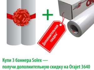 В разгар сезона компания «Пластикс-Украина» решила сделать небольшой подарок и увеличить рентабельность вашего бизнеса. Теперь при покупке от 3-х рулонов баннера вы получаете дополнительную скидку на Orajet 3640*.