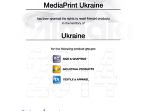 В середине апреля компания MediaprintUkraine продлила дилерское соглашение с Mimaki Engineering Co на продажу и сервисное обслуживание всей линейки оборудования Mimaki в Украине и Молдавии. 2013 год компания Mimakiотметила увеличением продаж своей технике в мире на 18%. А объемы продаж оборудования Mimaki в Украине выросли больше, чем на 20%. Сейчас компания Mimaki активно движется практически во всех направлениях широкоформатной печати — сольвентная печать, УФ-печать, печать латексными чернилами, печать по текстилю, сублимационные технологии, оборудование для порезки и т.д. В середине 2014 г. в продажу поступят новый бюджетный планшетный UVLED принтер MimakiJFX200-2513 и UJV500-160, а также будут новинки от Mimaki и в конце года. Очень важное событие для Mimaki в этом году – это 10-летие европейского представительства – MimakiEurope, празднование которого состоится в рамках выставки FESPA 2014 в конце мая в г. Мюнхене.