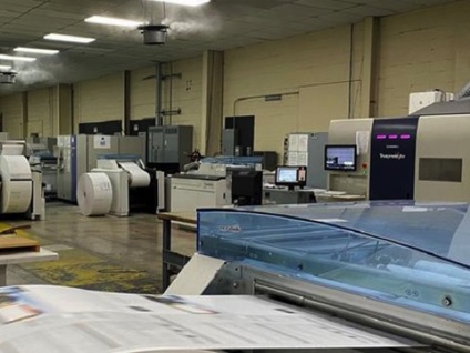Газетна друкарня в Бюдельсдорфі, на півночі Німеччини, є одним із чотирьох поліграфічних центрів регіональної медіагрупи NOZ mh:n і друкує 14 найменувань щоденних газет накладами до 150 тис. примірників. Через друкарське обладнання та 76 співробітників друкарні проходить до 11,5 тис. тонн паперу на рік. При цьому впродовж року друкується і вставляється до газет близько 550 мільйонів вкладок.