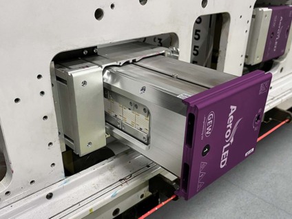 Британський виробник пристроїв УФ-закріплення відбитків, компанія GEW випустила AeroLED, світлодіодну систему з потужним повітряним охолодженням та робочою шириною до 60 см. У системі по-новому реалізовано процес повітряного охолодження: фільтроване повітря подається з централізованого компресора, розташованого далеко від друкарської машини, і безшумно проходить через блоки УФ-закріплення. Віддалене розташування компресора та великі фільтри дають змогу уникнути типових проблем, пов’язаних із потраплянням фарби та пилу.