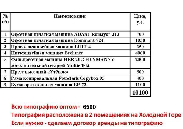Продаётся оборудование для типографии, розница по прайсу, при покупке всего оборудования вместе - уникальная цена!095-582-09-21 Дмитрий