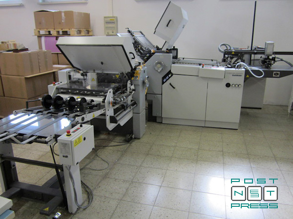 Высокоскоростная комбинированная фальцевальная машина Heidelberg Ti 52/6/4 KBi Proline для параллельной и перекрестной фальцовки формата А2. Фальцовка также может выполнить до 6 параллельных сгибов в первой кассетной секции и до 4 во второй.